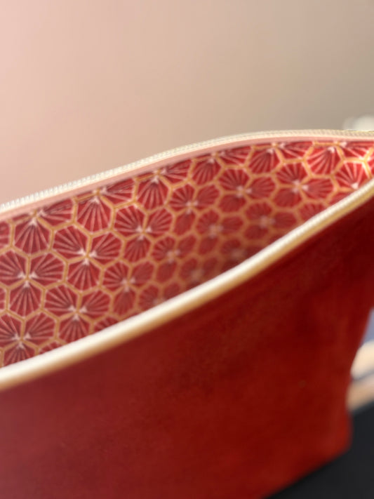 Trousse rouge et son intérieur fleuri