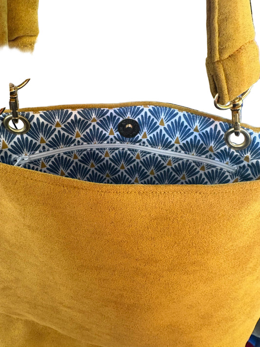 Sac à main jaune intérieur écailles bleues