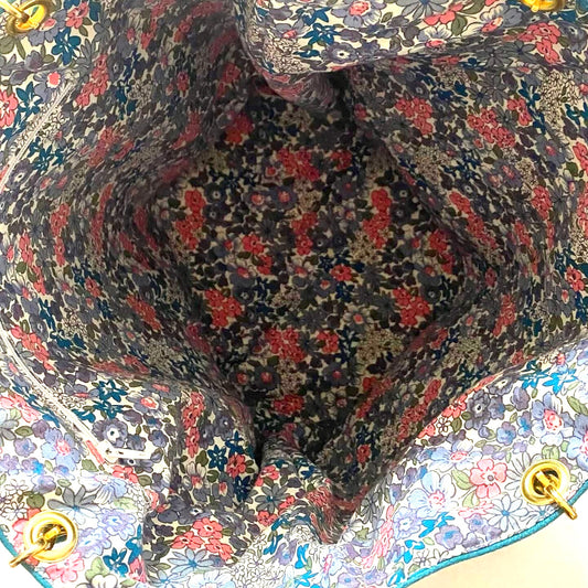 En venteSac cabas turquoise intérieur fleuri
